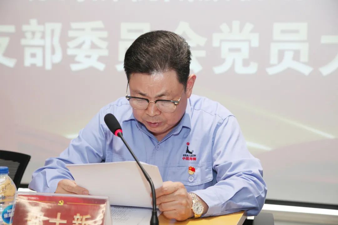 本次選舉大會(huì)在莊嚴(yán)的國歌聲中拉開帷幕,會(huì)議由海獅黨總支書記、總經(jīng)理鄔士新主持,大會(huì)嚴(yán)格按照換屆程序,審議通過了各項(xiàng)議程。